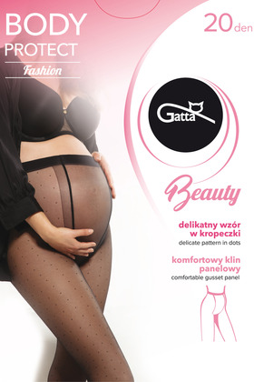 Rajstopy GATTA BODY PROTECT 20 DEN w kropki to połączenie delikatności, wygody i kobiecego uroku. Zaprojektowane z myślą o przyszłych mamach, które chcą czuć się swobodnie, a jednocześnie wyglądać elegancko. Subtelny wzór w drobne kropki dodaje im lekkości i dziewczęcego wdzięku.